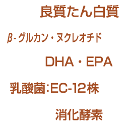 β-グルカンと初乳の主成分であるヌクレオチドを配合し、高齢期の健康維持に配慮。